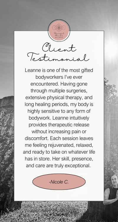 Located in the beautiful mountains of Tryon, NC, I create a safe, grounded space where deep nervous system nourishment and transformation can occur. Whether you're seeking physical relief, emotional release, or spiritual connection, you'll find a welcoming container for your healing process.
